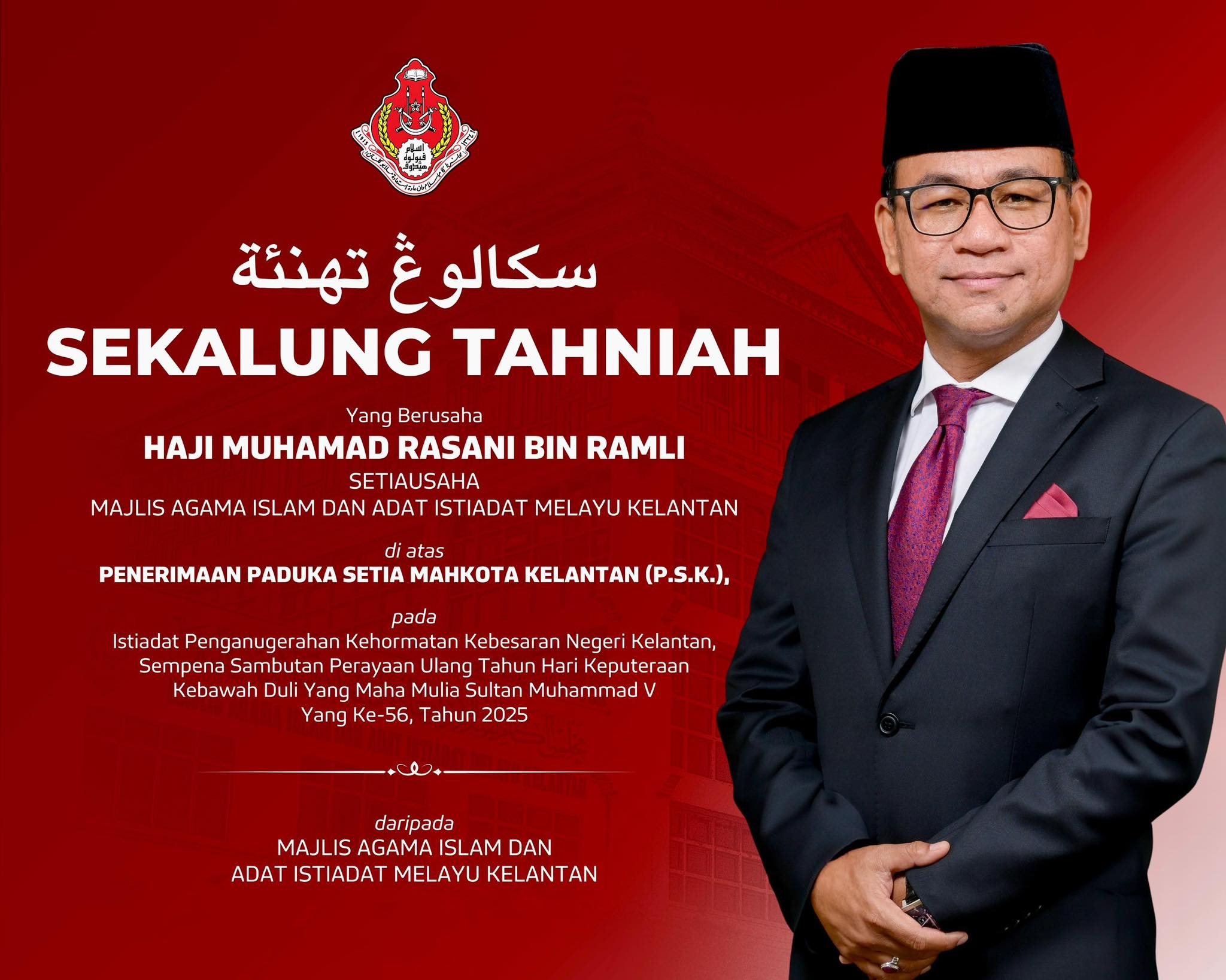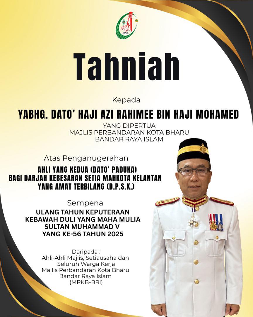 Ucapoan Setinggi-Tinggi Penghargaan dan Tahniah sempena Penganugerahan Kehormatan Kebesaran negeri Kelantan