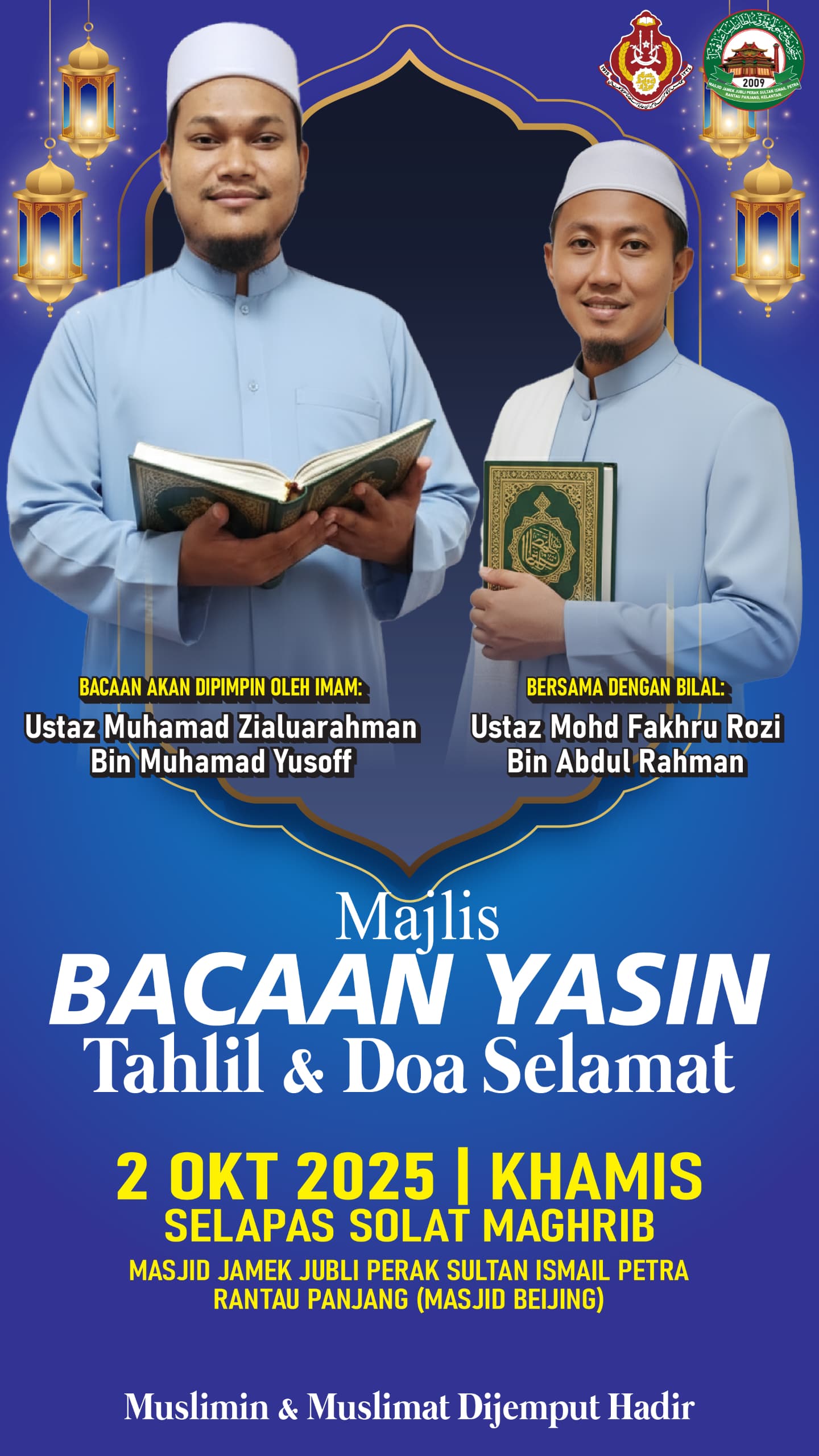 Marilah kita bersama-sama menghidupkan malam dengan kalamullah, zikir, dan doa untuk kesejahteraan kita semua. Kehadiran anda amat dihargai.