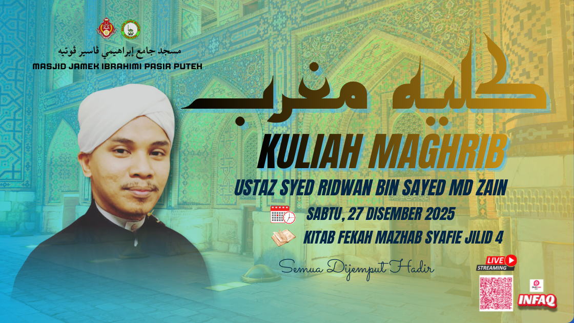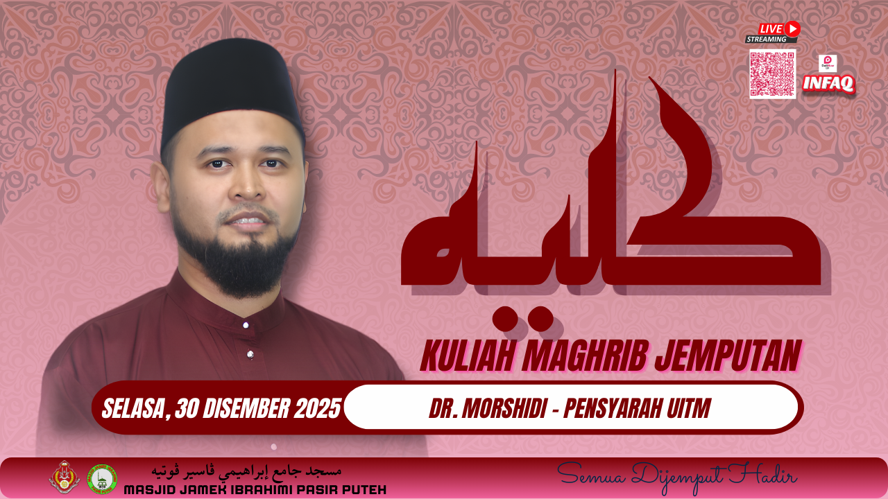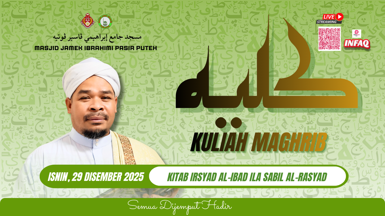 πΈ Kuliah Dhuha β Rabu Ini πΈ Assalamualaikum π Dijemput para muslimah untuk sama-sama hadir ke Kuliah Dhuha pagi seperti berikut: π Tajuk: Asas-Asas Fardhu Ain Wanita π Tarikh: Rabu, 31 Disember 2025 β° Masa: 9.00 pagi π Tempat: Masjid Jamek Jubli Perak Sultan Ismail Petra (Masjid Beijing), Rantau Panjang π Penyampai: Ustaz Armin Azhari Bin Mamat Kuliah santai pagi, dengar ilmu asas yang penting untuk amalan harian. Jom luangkan masa sekejap, tambah ilmu sama-sama π· π‘ Akan disiarkan secara langsung di Facebook Masjid Jubli Perak Sultan Ismail Petra Rantau Panjang. π Infaq dialu-alukan: π¦ Bank Islam 03081001014007 Insya-Allah bermanfaat untuk kita semua π€