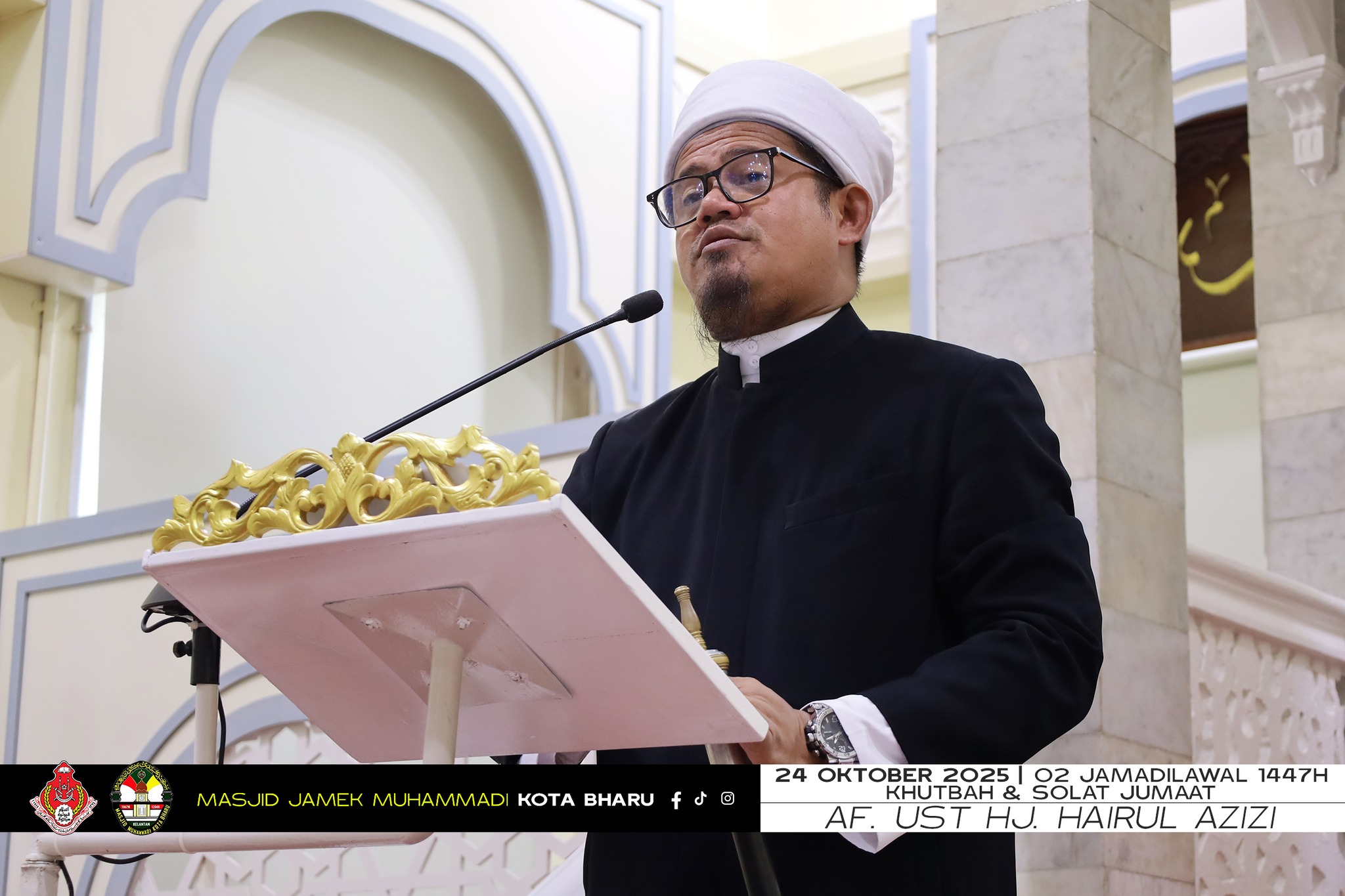 Khutbah & Solat Jumaat 24 Oktober 2025, Imam serta Khatib: Al Fadhil Ustaz Haji Hairul Azizi B. Mokhtar, Tajuk: Akhlak Teras Keimanan Sejati