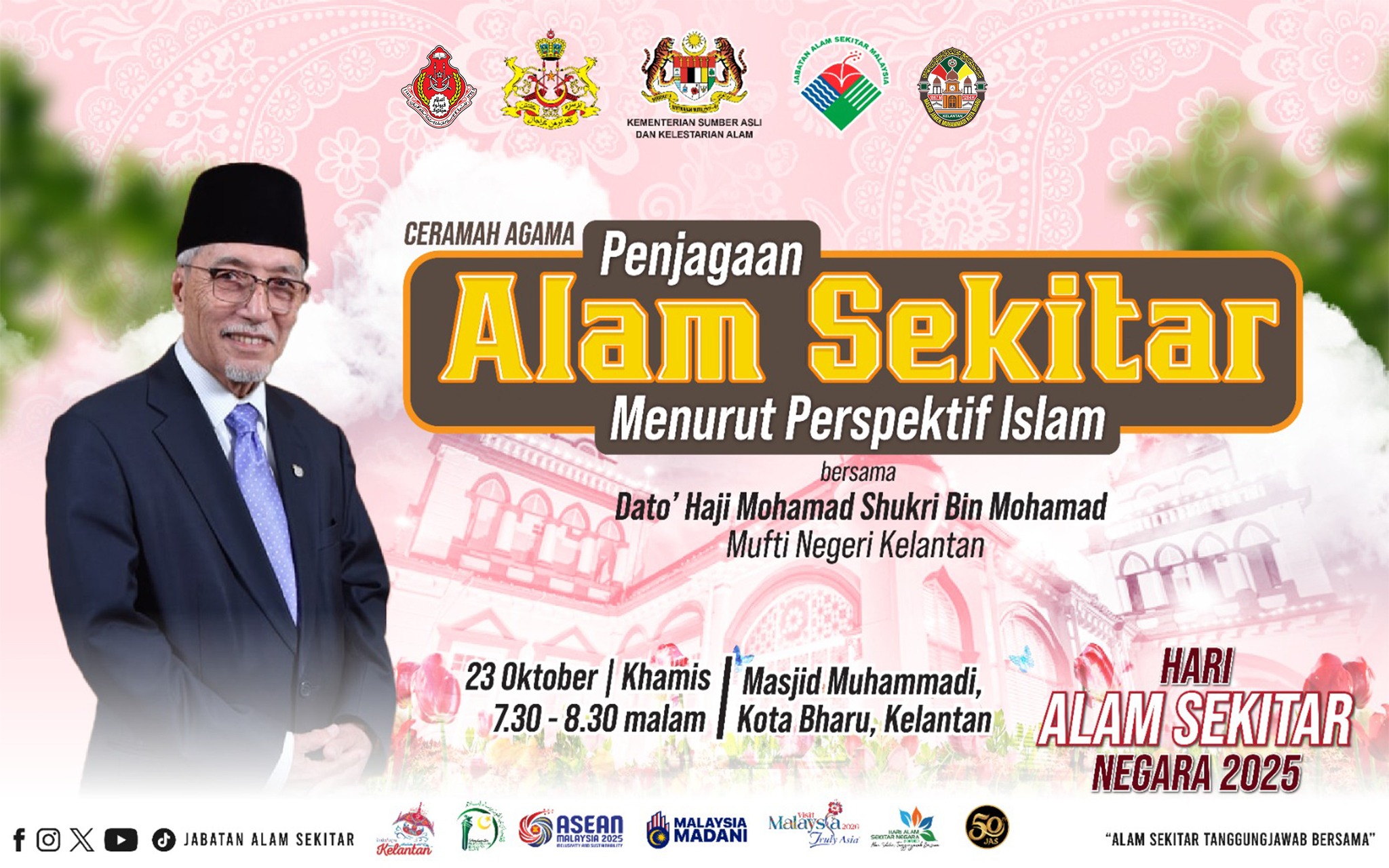 KULIAH MAGHRIB PERDANA HARI ALAM SEKITAR KEBANGSAAN 2025 Ceramah Agama Penjagaan Alam Sekitar yang disampaikan oleh YB SS. Dato' Kaya Perba Mohamad Shukri Bin Mohamad (Mufti Negeri Kelantan)