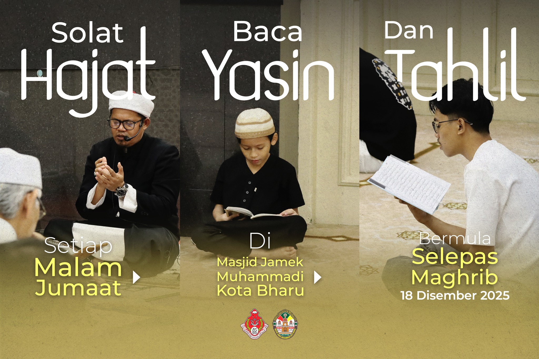 πΏ KULIAH SEBELUM JUMAAT (KHAS MUSLIMIN) πΏ π Hari: Jumaat π Tarikh: 19 Disember 2025 β° Masa: 12.30 Tengahari π Tempat: Masjid Jamek Jubli Perak Sultan Ismail Petra, Rantau Panjang, Pasir Mas, Kelantan ποΈ Disampaikan oleh: Ustaz Dr Ahmad Mujahideen Bin Haji Yusoff (Pensyarah Maahad Tahfiz Al-Quran MAIK) π‘ Akan disiarkan secara langsung (LIVE): Facebook Masjid Jubli Perak Sultan Ismail Petra Rantau Panjang π Support kami dengan like dan follow π€² Sumbangan & Infaq Jariah: Bank Islam No Akaun: 03081010014007 (Jawatankuasa Kemajuan Agama Masjid Bandar Jubli Perak Sultan Ismail Petra) π£ Jemput para muslimin hadir bagi mengimarahkan majlis ilmu sebelum solat Jumaat, semoga membawa keberkatan dan manfaat buat kita semua.