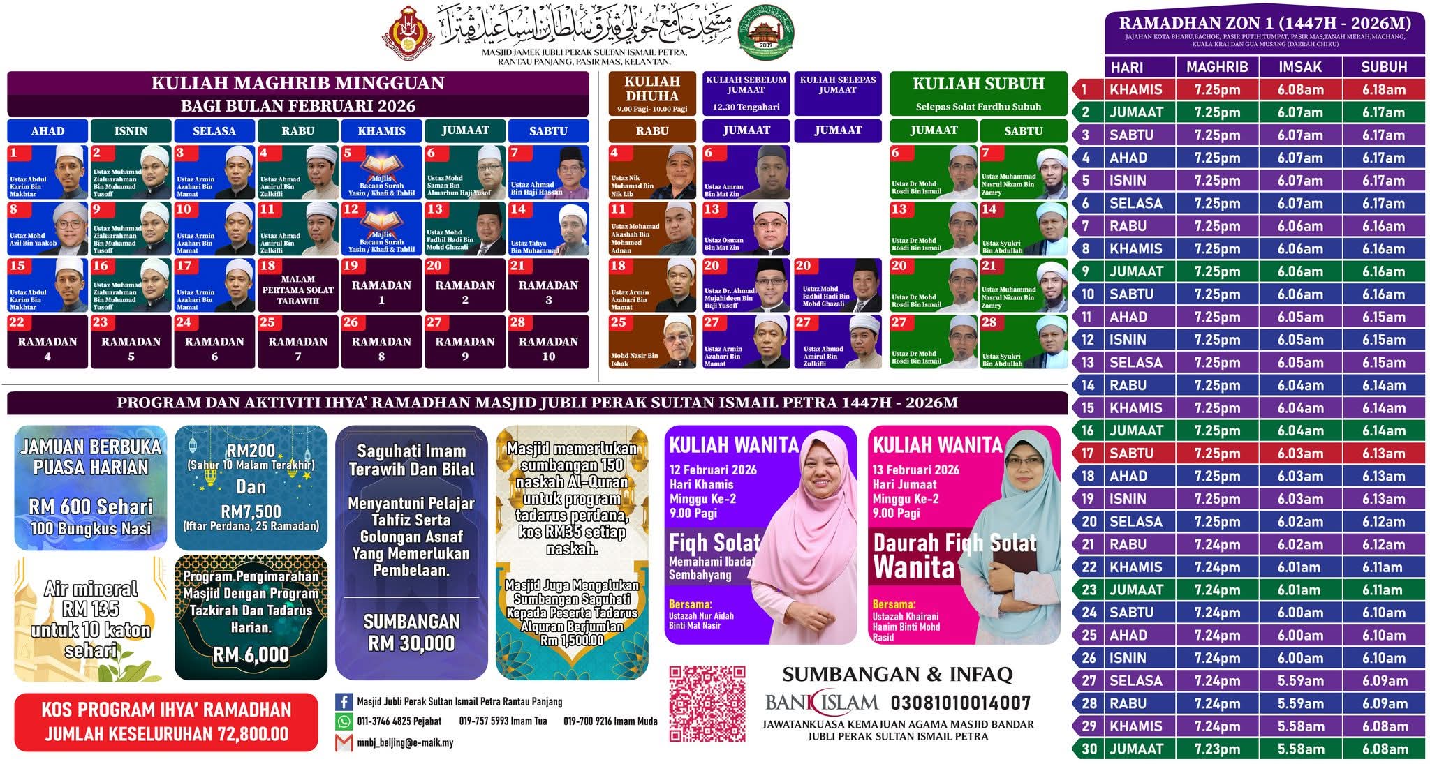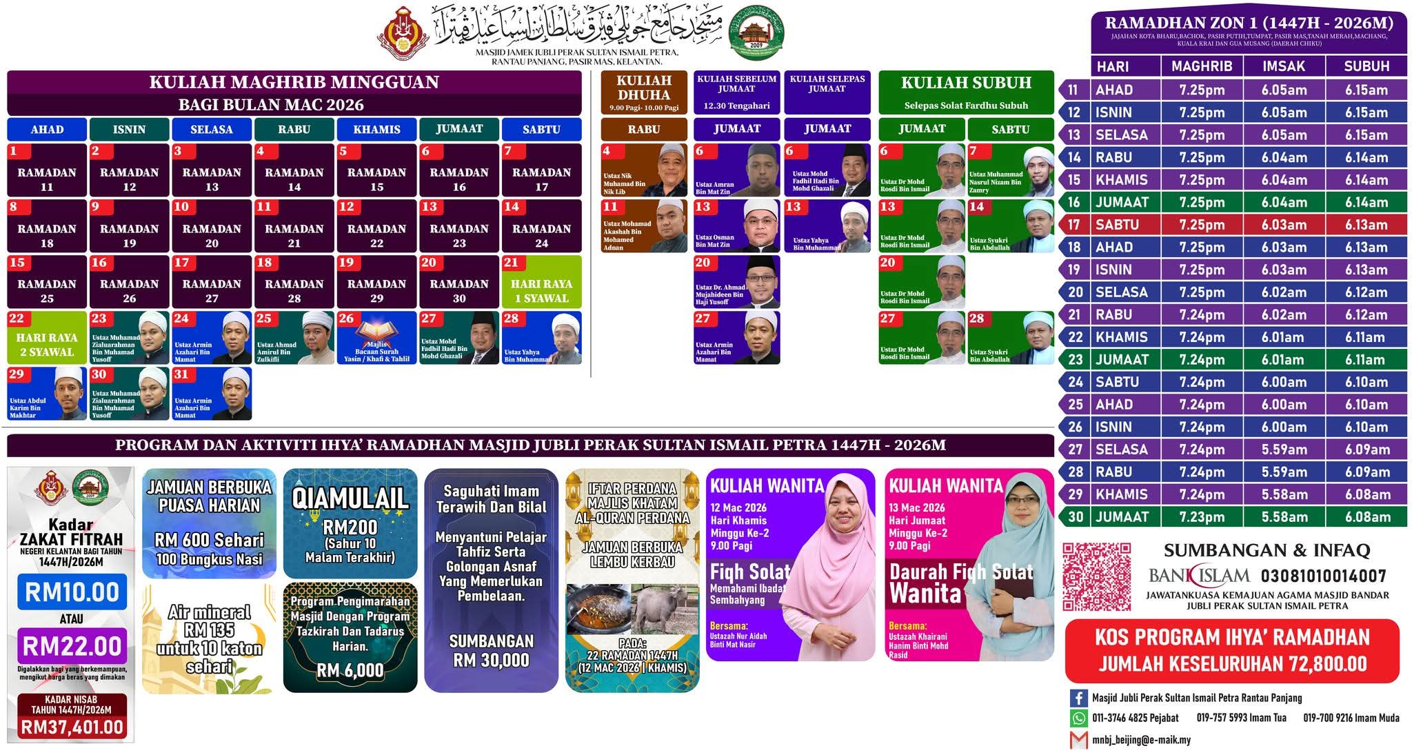 JADUAL KULIAH BULANAN BAGI BULAN MAC 2026/1447H MASJID JAMEK JUBLI PERAK SULTAN ISMAIL PETRA